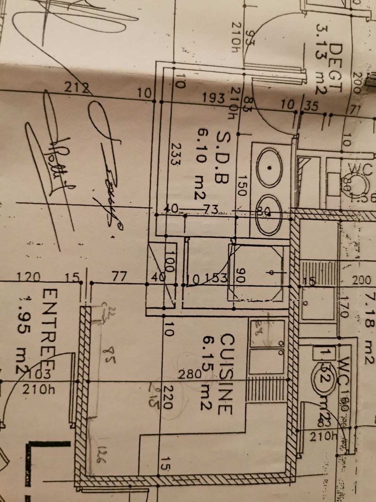 Réfection salle de bain et cuisine existantes. Etude faisabilité réduire l'espace salle de bain au profit de la cuisine. Une cloison entre les deux espaces.