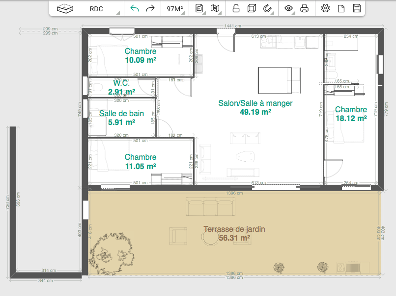 Maison de 3 chambres / 2 salles de bain et pour une surface de 100 M2 max habitable,