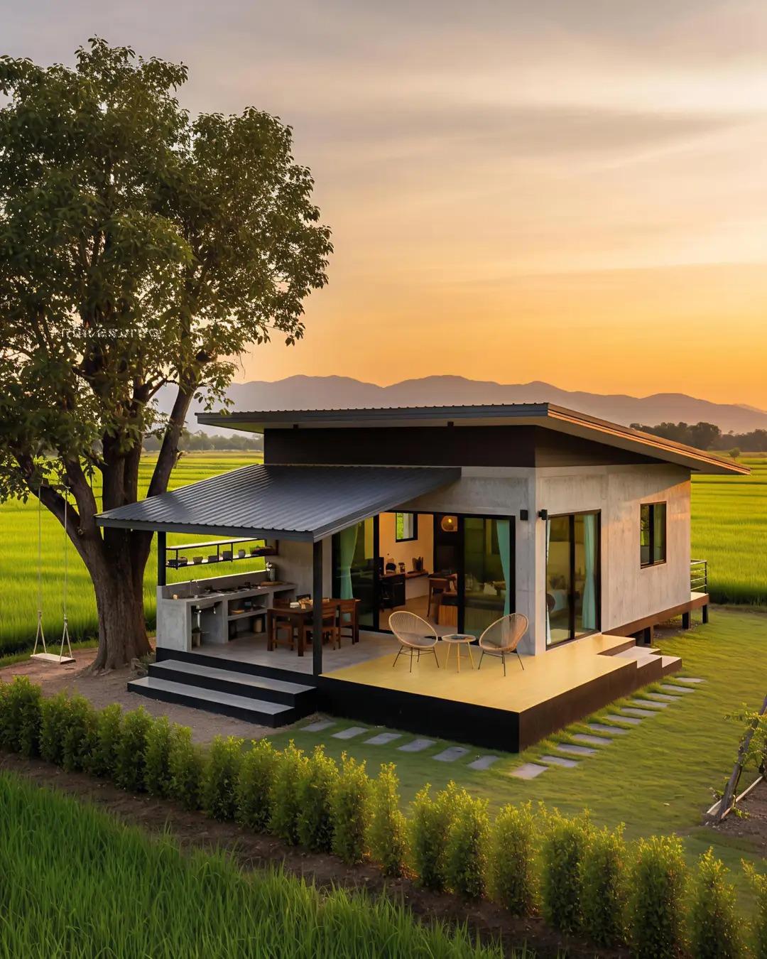 Ce sera 2 types bungalow avec salle de bain extérieur et cuisine exter