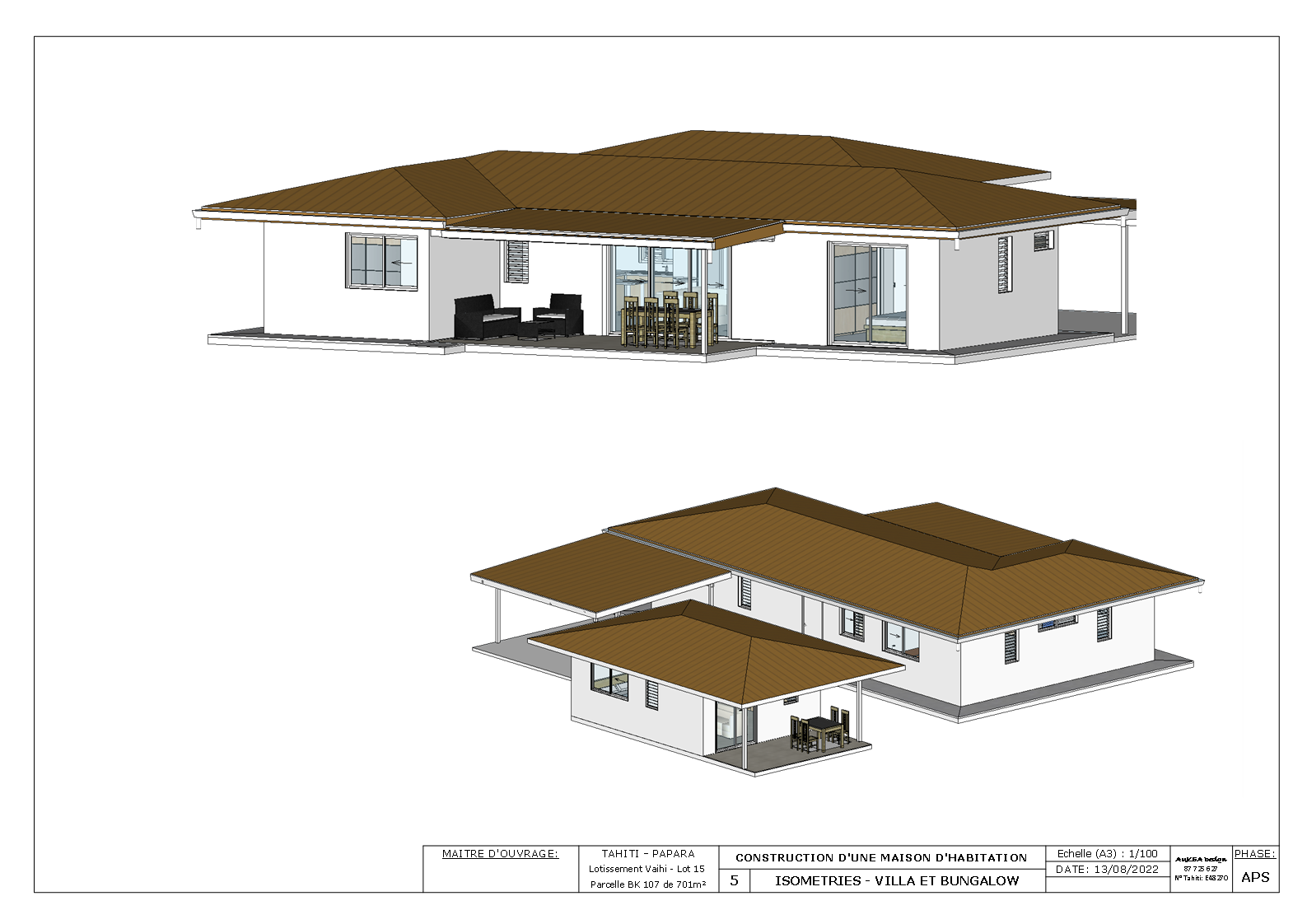 Construction d'une Villa de 3 ch en maçonnerie, d'un bungalow en ossature métallique, d'un car-port 2 places et d'une clôture à Papara.