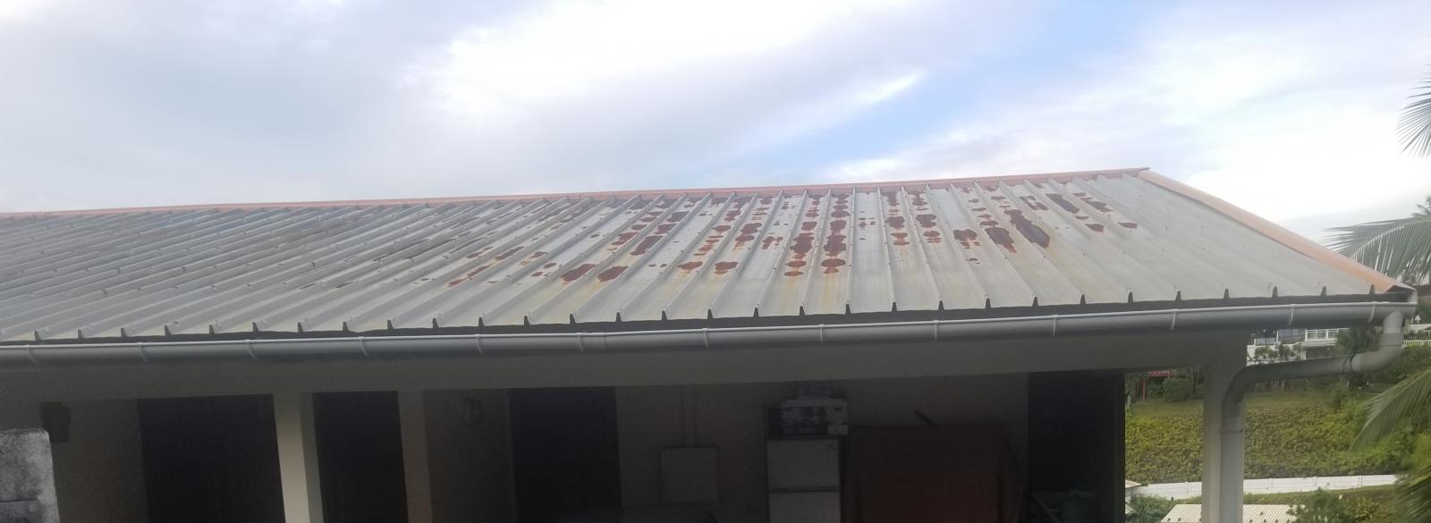 La toiture a commencé de rouiller.