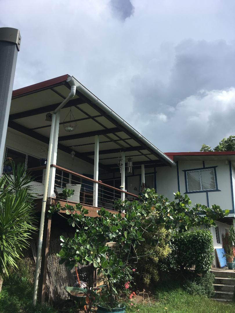maison blanche à repeindre en extérieur avec colombages bleus 2 modules, il faudrait faire venir quelqu'un pour mesurer en M2 de peinture, il faudra une grande échelle pour le 2è module, je souhaite également faire repeindre l'intérieur dans un deuxième temps
