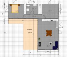 Je souhaiterais avoir un devis pour cette maison en "L" en dur de 75m² avec terrasse de 30m² couverte le tout sur pilotis.