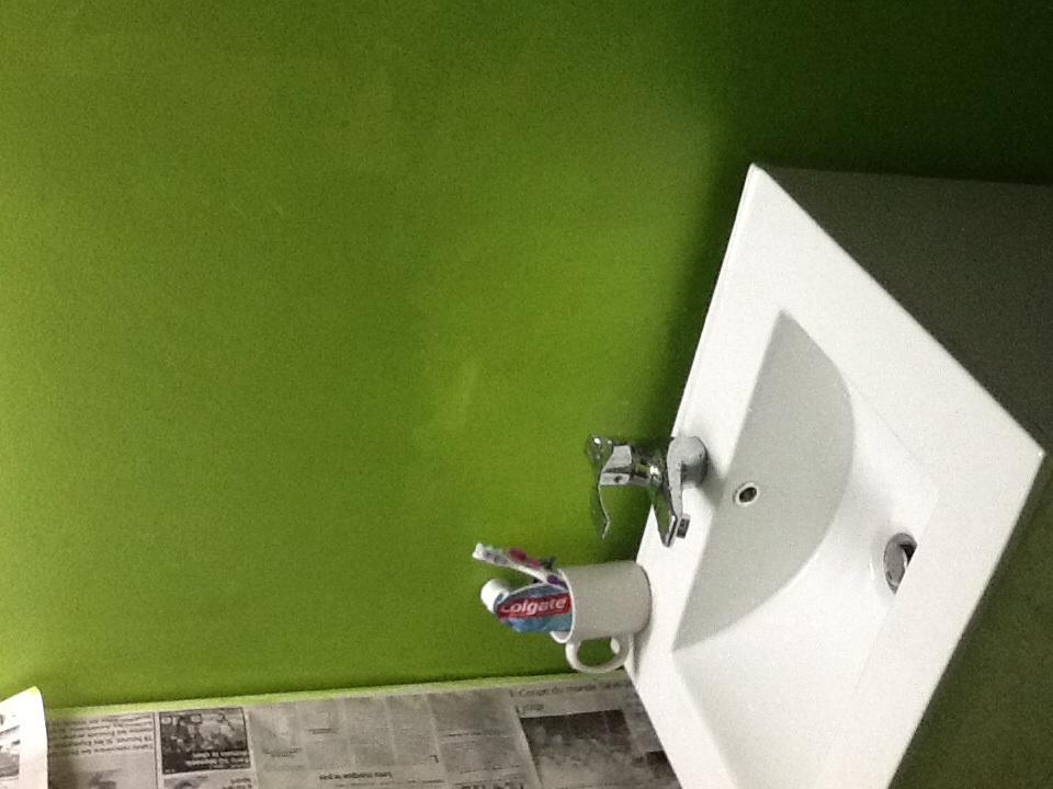 La salle d'eau est déjà de couleur vert MAIS fonçé, j'aimerai l'éclaircir, je dispose du pot de peintre vert utilisé.