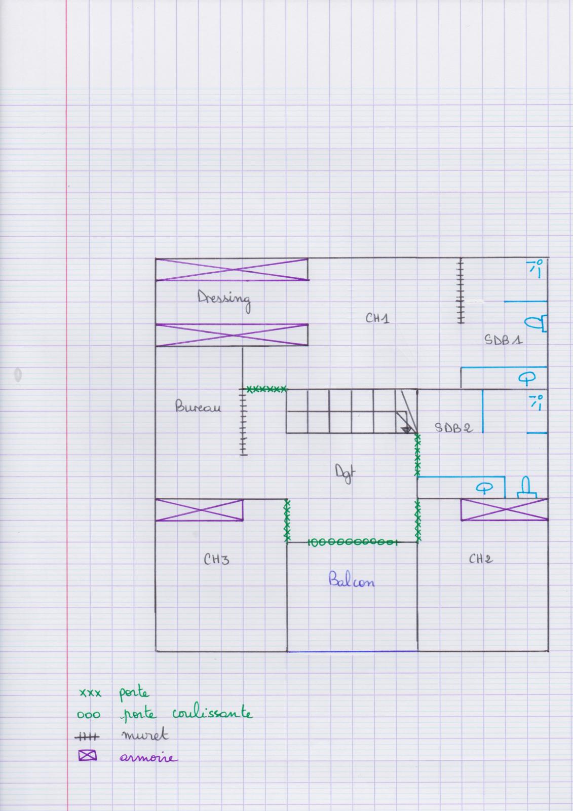 Le rez-de chaussée comprend la cuisine, le salon, le cellier, la buanderie, toilette extérieur, salle d'outils et garage. L'étage est composé de 3 chambres, 2 salles de bain, 1 dressing, 1 bureau et un balcon.