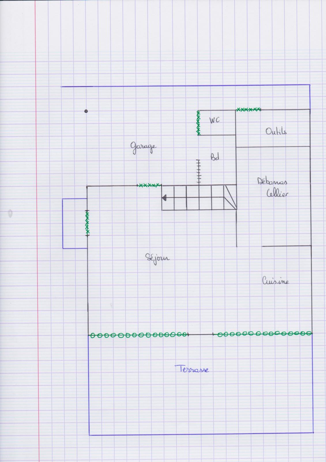Une maison sur deux niveau avec une surface habitable de 2x9x9=162 m2 garage inclus. En plus, une terrasse de 9x4= 36 m2 vient compléter le bâtiment principal.