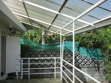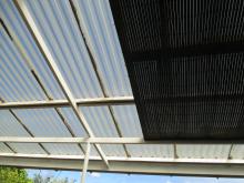 Toiture d'une terrasse de 48 m2 de maison composé de plaques PVC ondulées transparentes qui donnent des signes de faiblesse au niveau de leur étanchéité.