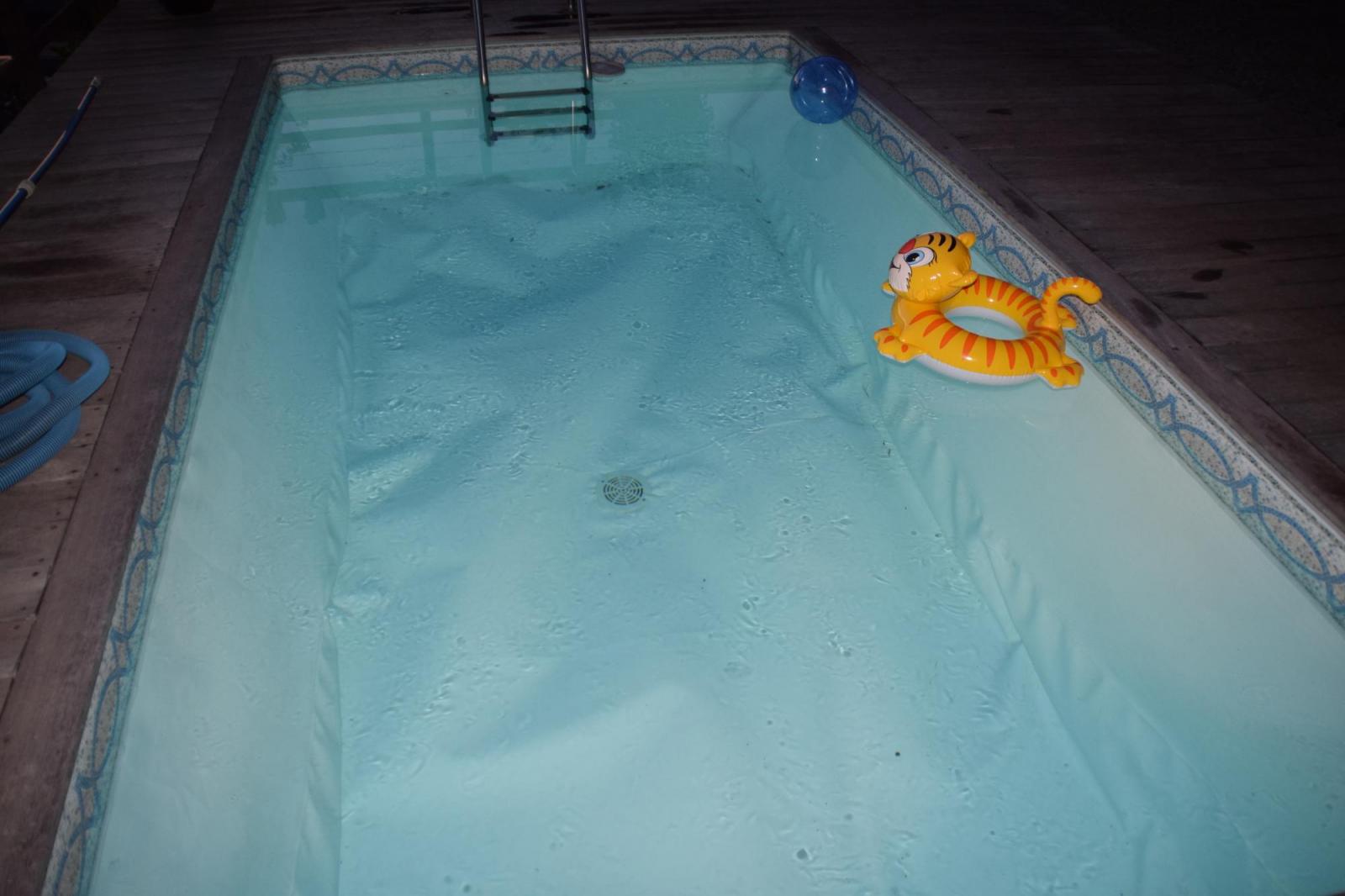 j'ai une piscine 4*3 dont le liner est visiblement percé (en bon état par ailleurs) car de l'eau s'accumule entre le liner et le banchage et ça gondole. Voir sur la photo, c'est explicite.