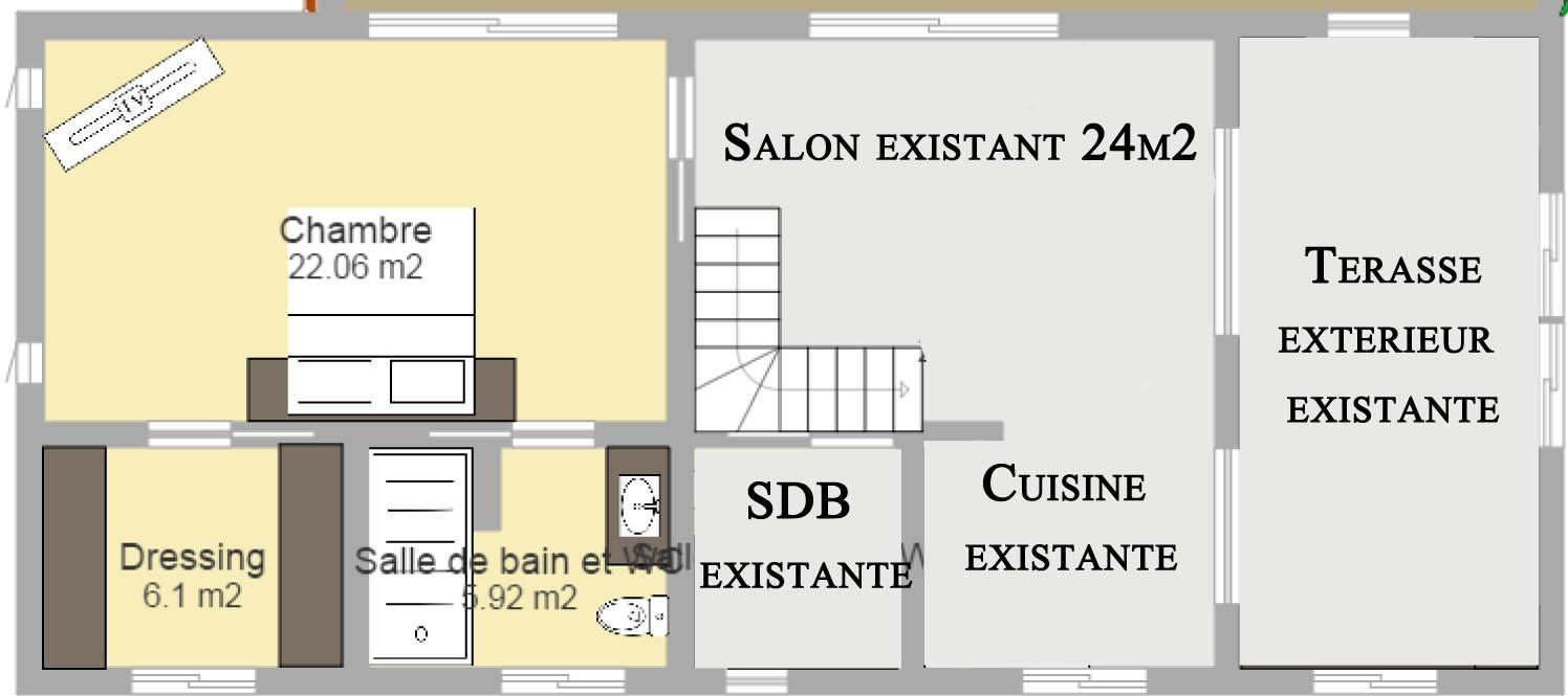 Voudrais faire une extenssion de notre bungalow qui est déjà en ossature métallique et placo-platre. Rajouter une chambre parentale (chambre, SDB + WC et Dressing) de 32 m2.