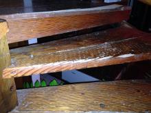 Prévoir ponçage, polissage, traitement insecticide, vernissage, voire remplacement de certaines marches.