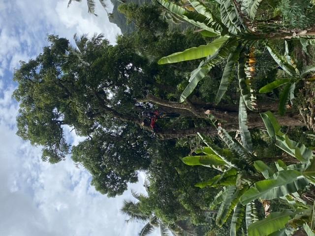 Élagage d'un grand manguier sur moorea dans la commune de haapiti