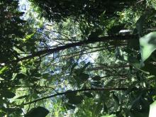 Élagage d'un arbre à pain avec un avocatier, des acacias