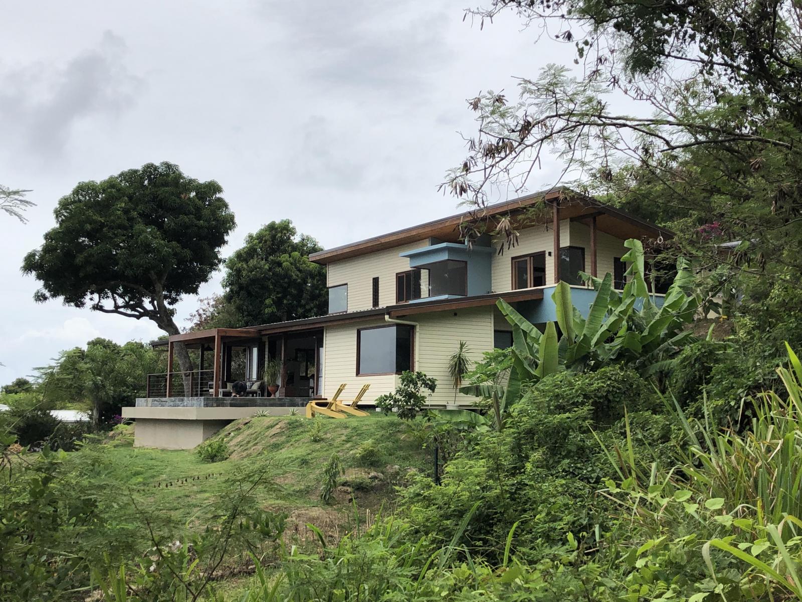 Maison à ossature bois, clins bois et toiture tôle, située à Moorea, R+1