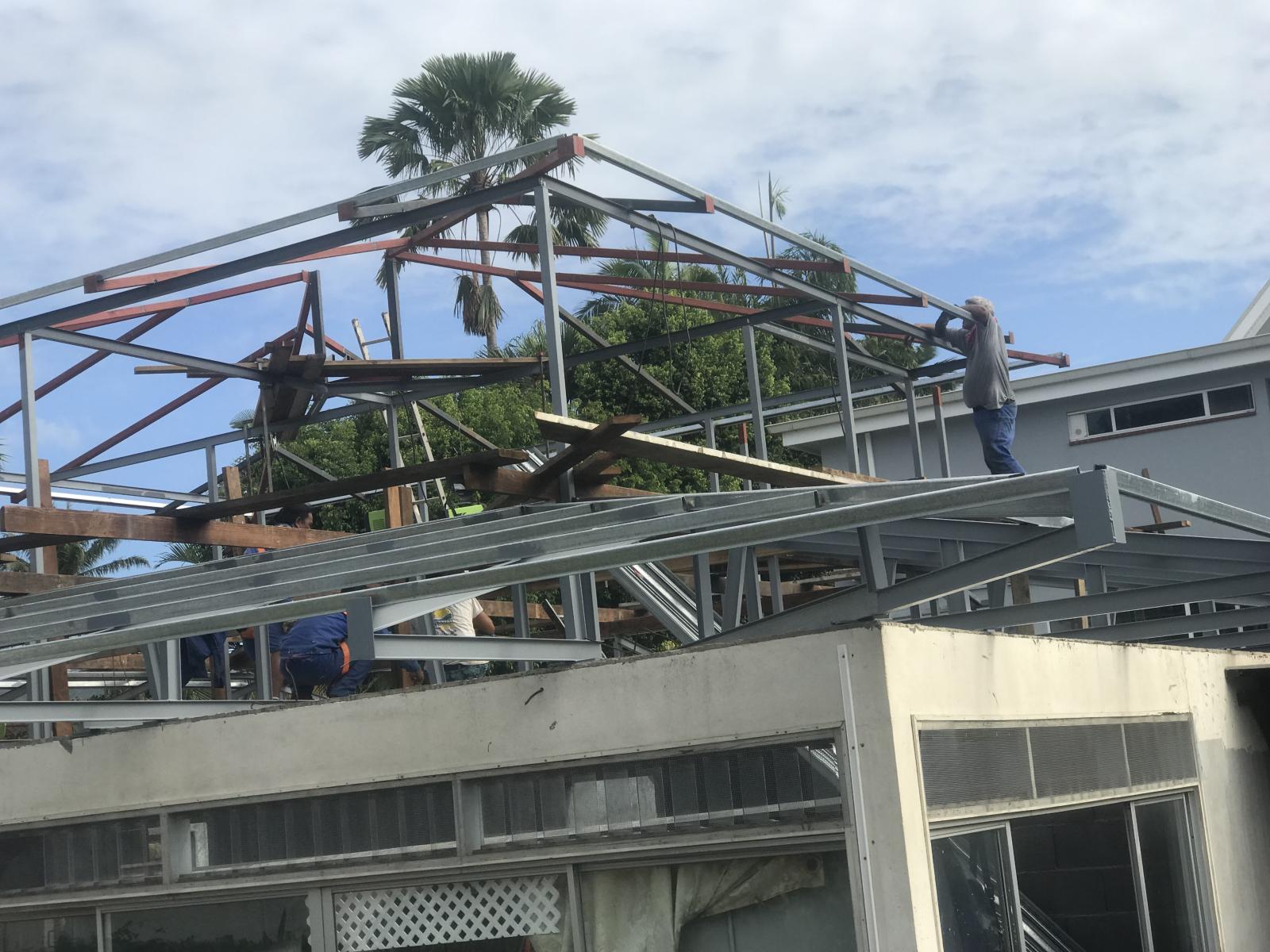 • Démolition de la charpente existant en bois et remplacement en charpente métallique.