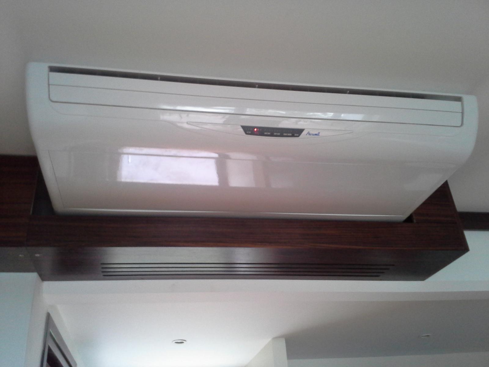 Pose d'une console plafonnière 18000 BTU à l'hotel RADISSON avec son encastrement en bois exotique.