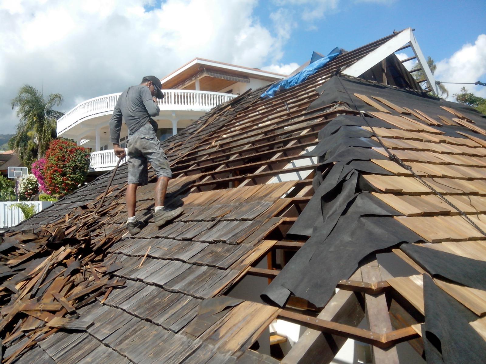 Sur les hauteurs de Punaauia, voici une des rénovations faite sur une toiture en bardeaux.
